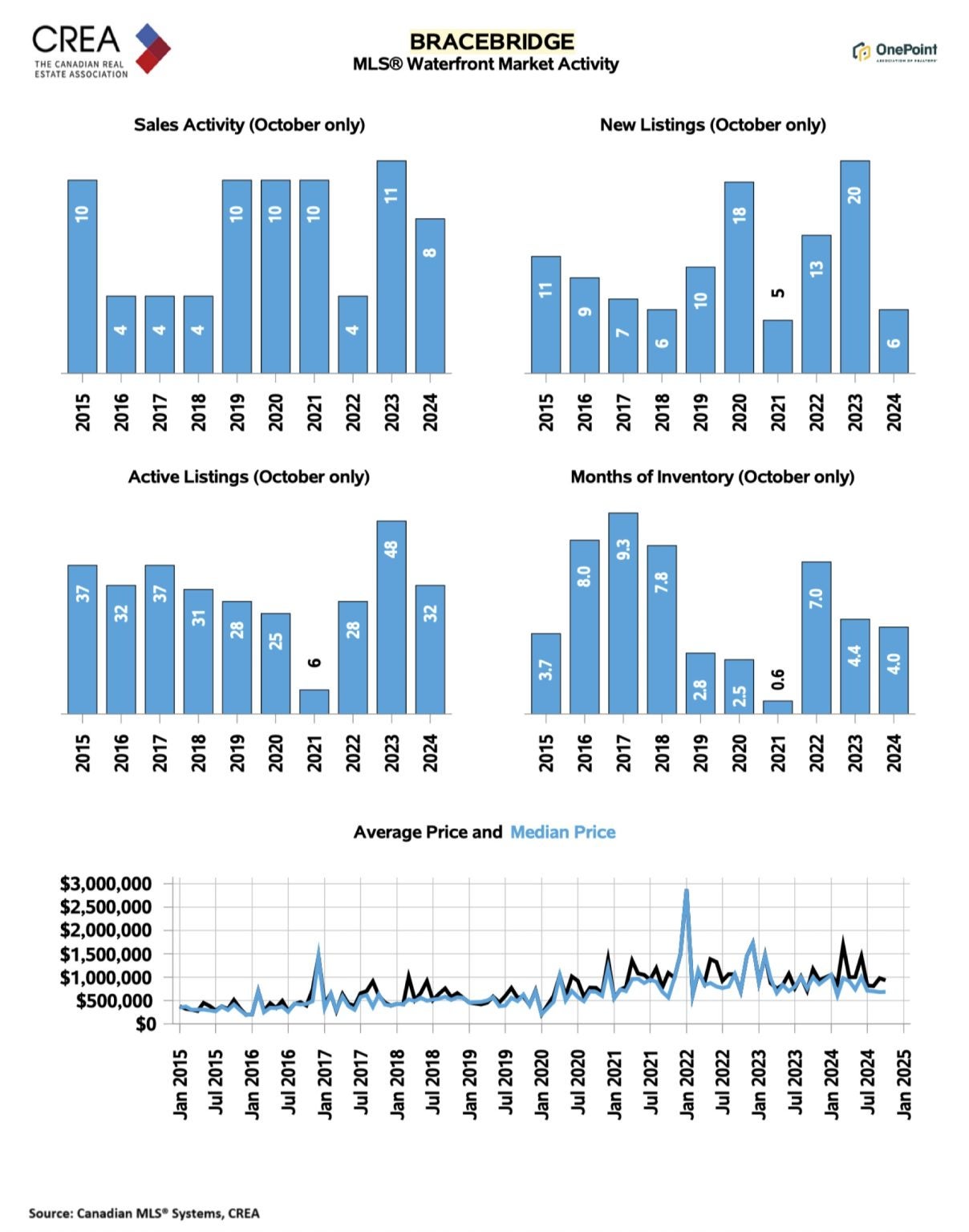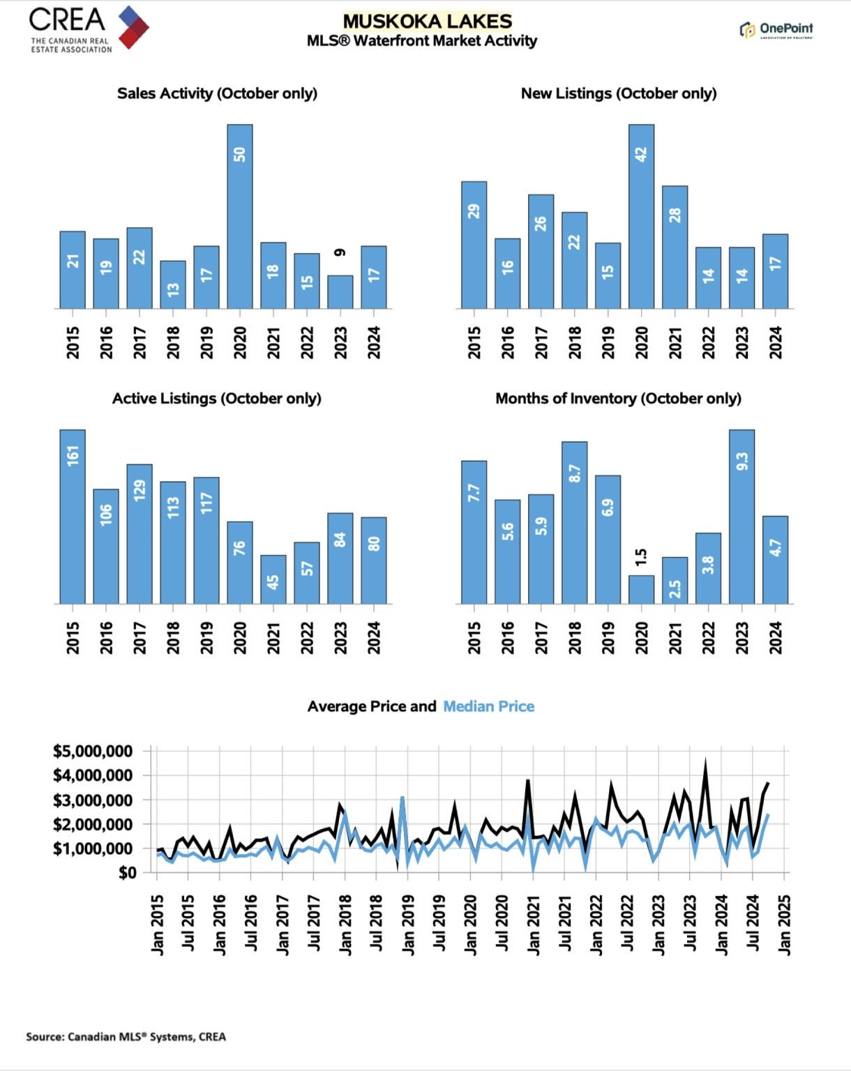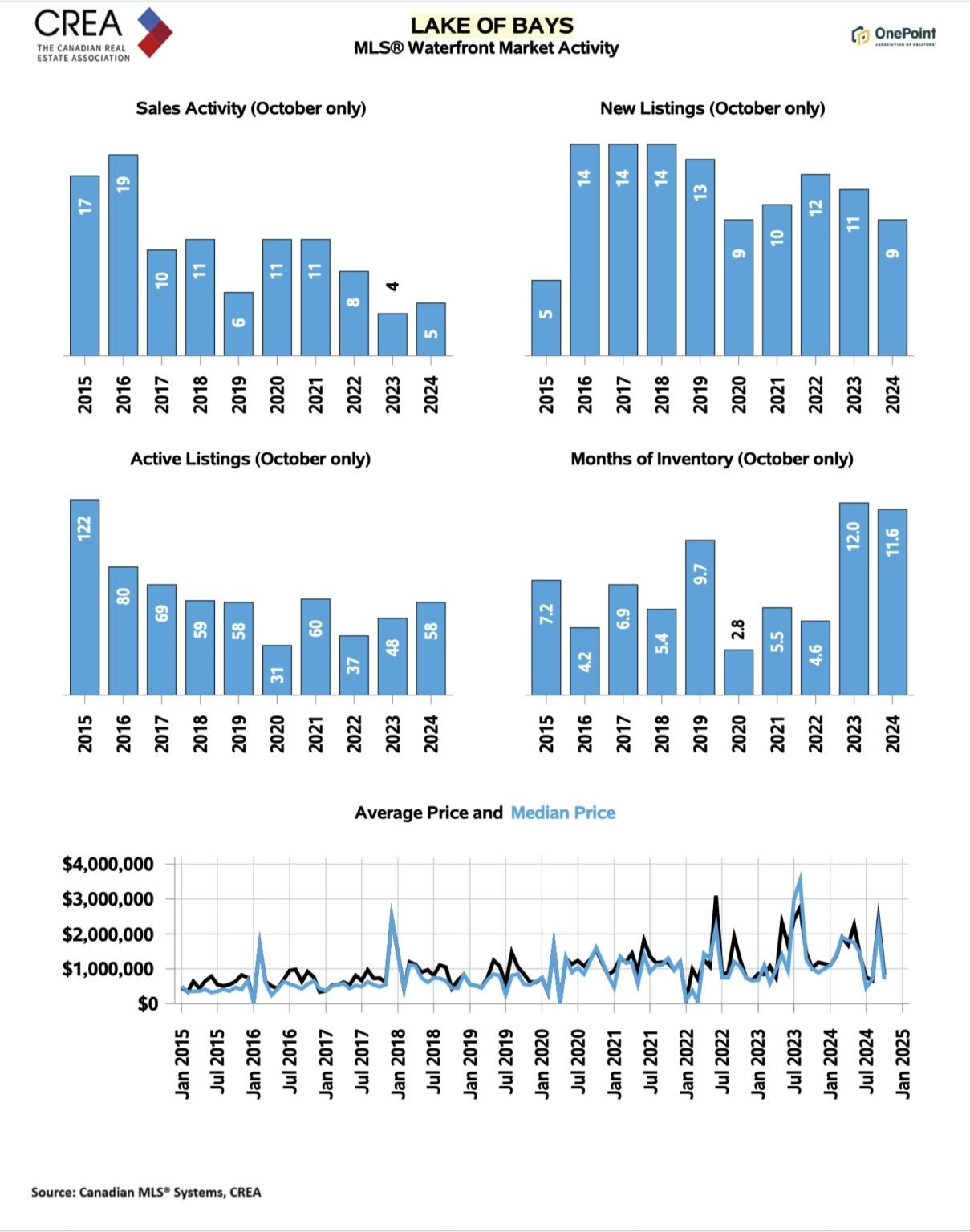 While non-waterfront sales have rebounded sharply, the waterfront market remains more tempered, reflecting its seasonal nature. Savvy buyers and sellers alike should keep an eye on broader trends as we approach spring 2025.